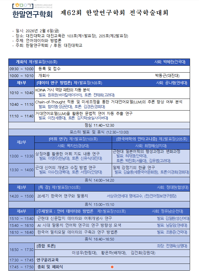 한말연구학회 제62회 전국학술대회를 아래와 같이 엽니다.